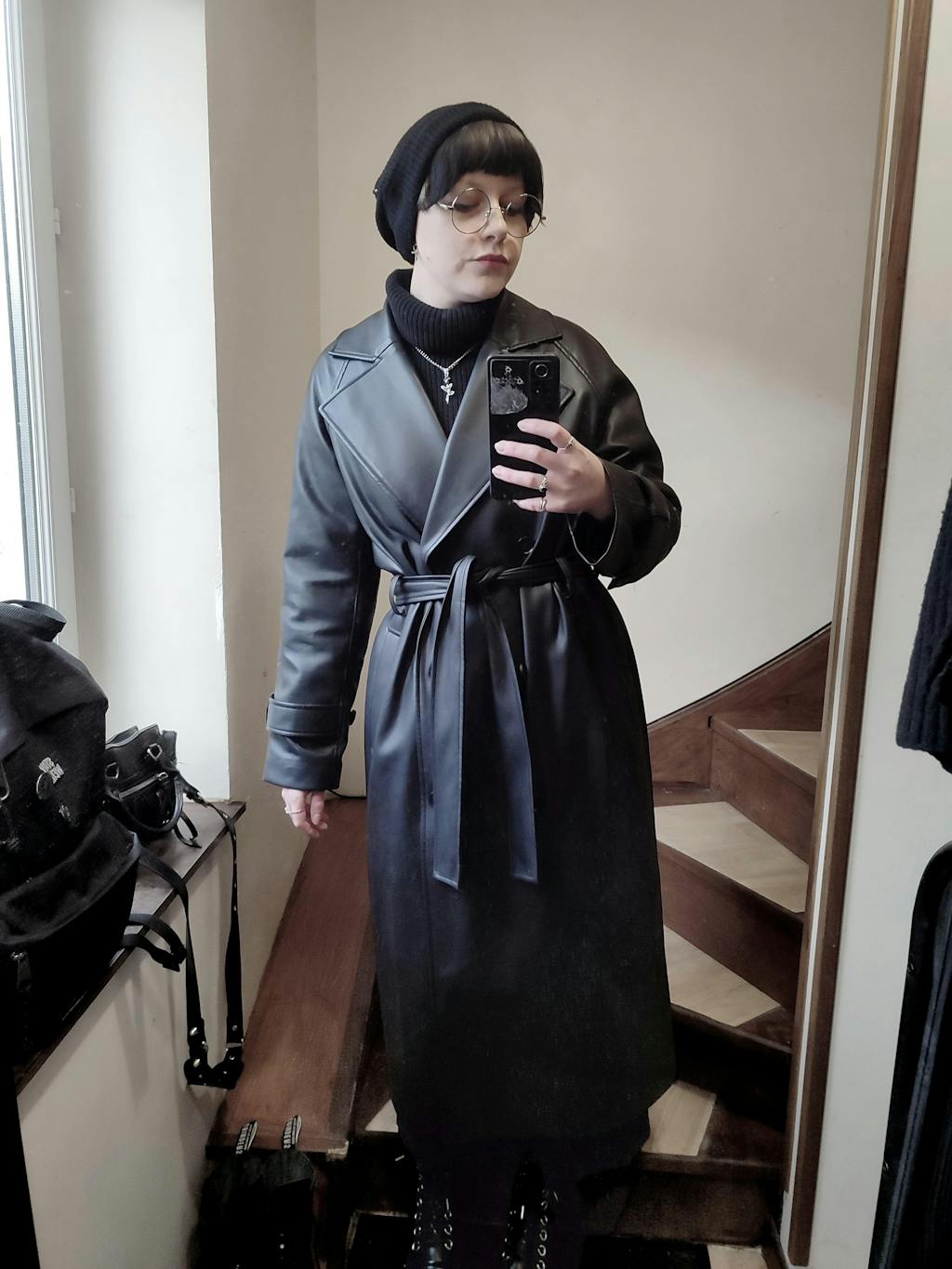 Mara Faux Leather Trench Coat
